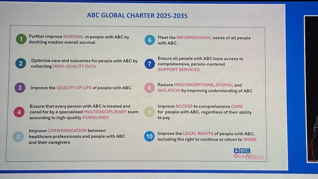 „Organisiert wird die Konferenz von der ABC Global Alliance, einer unabhängigen, gemeinnützigen Organisation, die sich ausschließlich dafür einsetzt, das Leben von Frauen und Männern mit fortgeschrittenem Brustkrebs weltweit zu verbessern und zu verlängern. Die Allianz zählt mittlerweile über 280 Mitglieder aus mehr als 100 Ländern.“