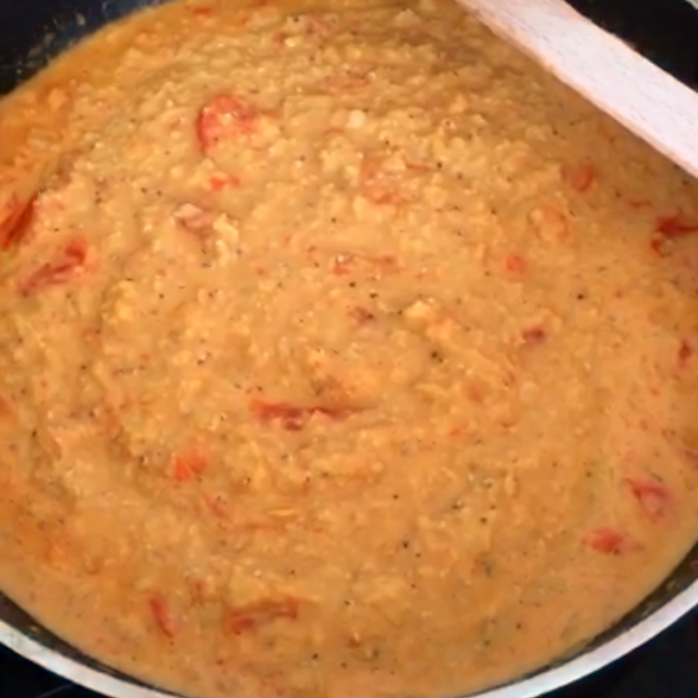 Die Linsen müsst ihr sehr gut waschen. Anschließend in ca. 600 ml Wasser weich kochen. Sie dürfen ruhig sehr weich sein. Anschließend einfach in ein Sieb abgießen.