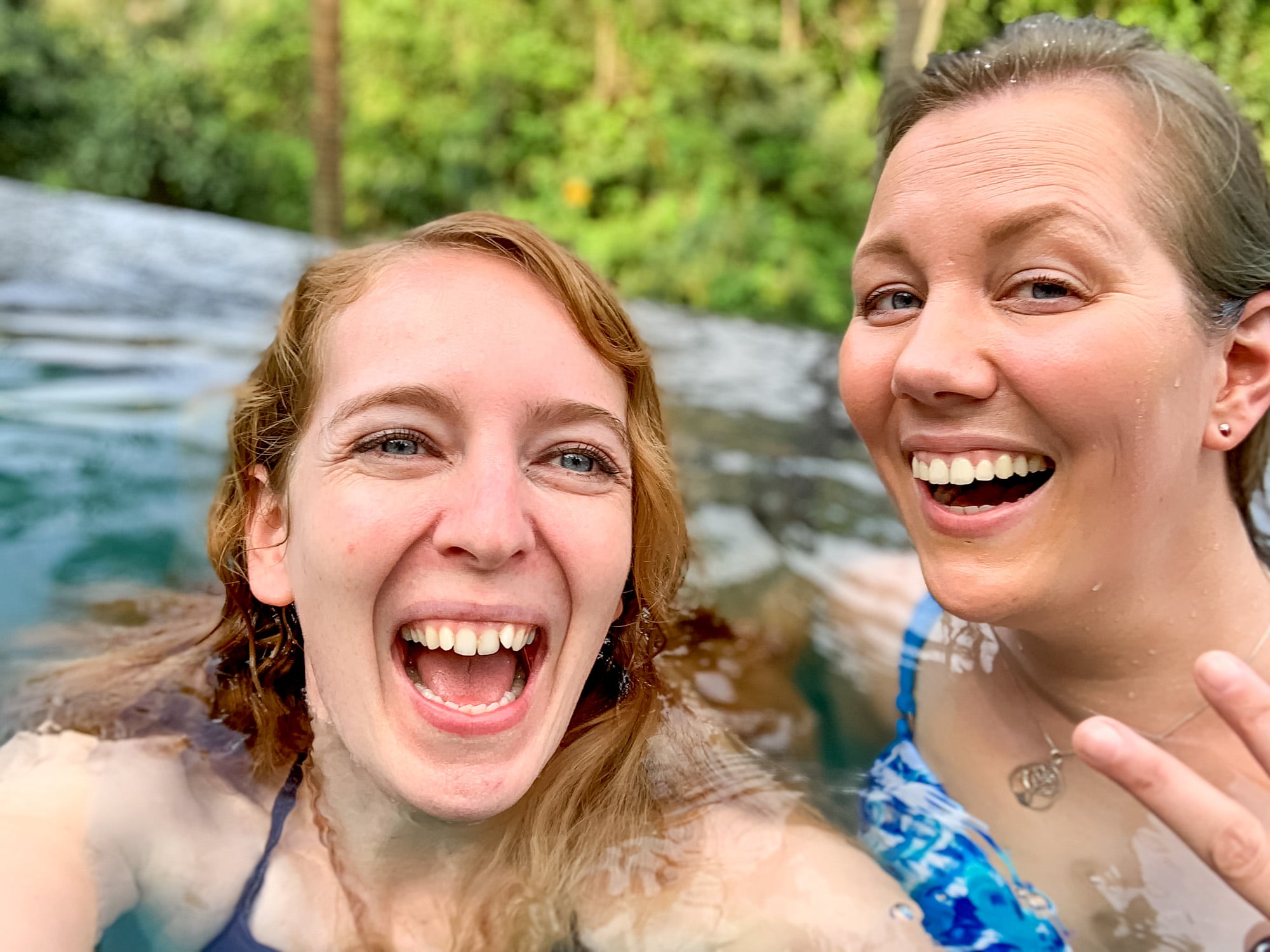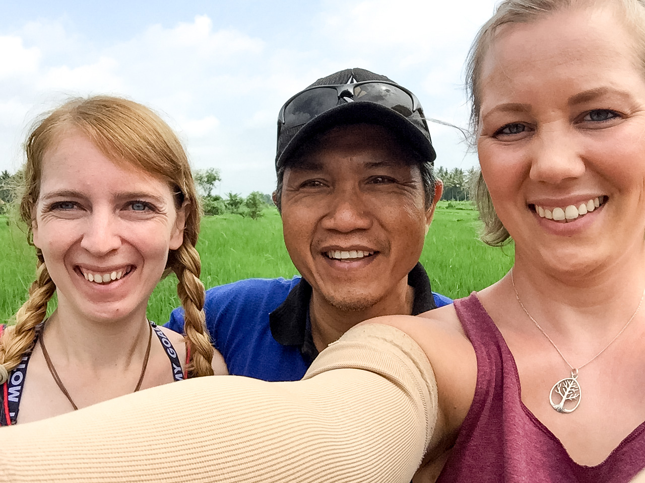 Ausflugstag. Um 10 ging es nach dem Frühstück los mit unserem persönlichen Fahrer und Tourguide. Zuerst an den Wasserfall Tegenungan. Zig große Stufen bei über 30 Grad, das war extrem anstrengend! Wirklich! Der Wasserfall war allerdings wunderschön. Auf den Bilder sieht man ganz gut, dass eigentlich überall echt viel los ist. Auf den tollen Instagram Fotos sieht man das ja meist nicht. Und Christina war übrigens begehrtes Fotomotiv!