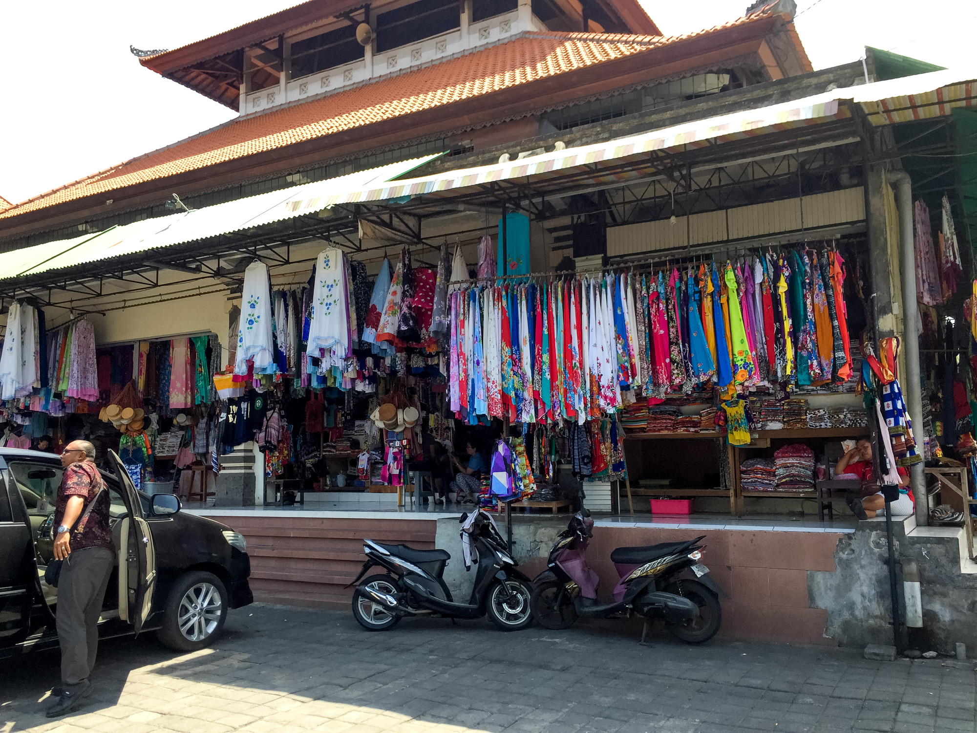 Freitags war wieder Hotelwechsel angesagt. Wir haben uns zwei Stunden dazu gebucht und uns vom Fahrer nach Sukavati zum Markt fahren lassen. Da wir es bisher ja noch nicht geschafft hatten einkaufen zu gehen in Ubud wollten wir das gerne hier machen. Im Internet hatten wir nämlich gelesen, dass der Markt in Sukavati schöner, besser und günstiger als in Ubud sein soll. Unser Fahrer hat uns empfohlen, zum Indoor Markt zu gehen, der für die Einheimischen wäre und damit günstiger wie der Outdoor Markt. Das war allerdings doch relativ enttäuschend, handelte es sich dabei doch um eine Art Supermarkt, in dem es zwar auch Klamotten gab, aber gefühlt nicht so schön und qualitativ wie wir es in Ubud gesehen hatten.