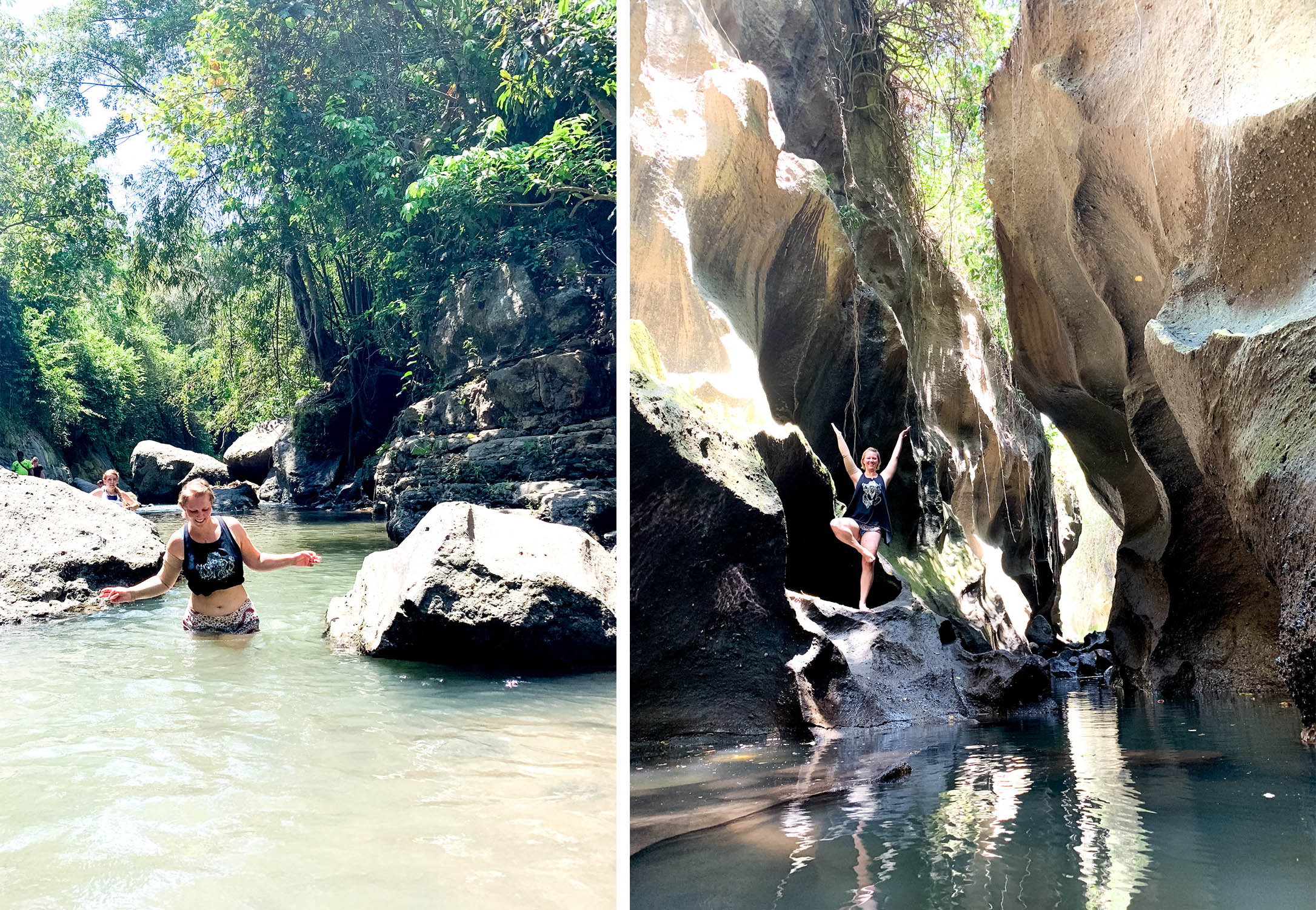 Ich gebe zu: Der Anfang war eine Qual. Die Kombi aus schlecht bis gar nicht geschlafen, kaum gegessen und trotz Vomex Übelkeit durch die Fahrt hat mich nicht gerade freudig gestimmt. Allerdings wurde es – zum Glück – im Laufe des Morgens besser. Wir sind kreuz und quer mit unserem persönlichen Guide durch den Canyon gekraxelt. Barfuß. Über die Berge und durch das Wasser, das teilweise bis zur Brust gereicht hat.